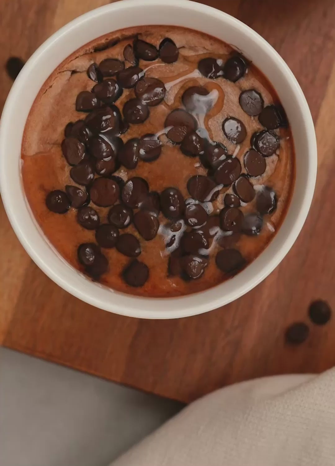 - Pour into the dish and sprinkle chocolate chips on top.